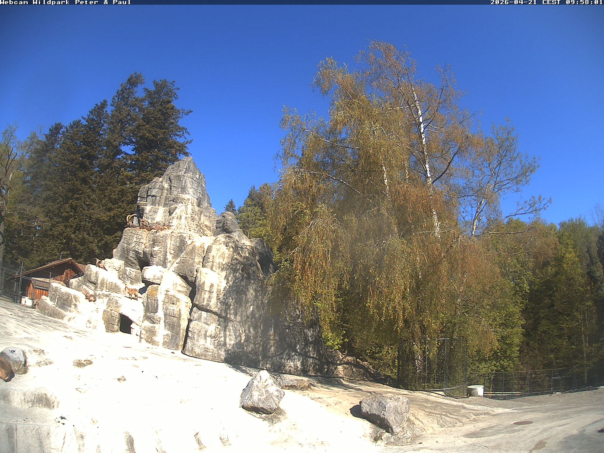 Die Wildtiergehege fügen sich nahtlos ins leicht kupierte Gelände ein. Die Rothirsche, Sikahirsche, Damhirsche, Gämsen, Steinböcke, Murmeltiere, Wildschweine, Luchse und Wildkatzen sind in ihrer natürlichen Umgebung zu sehen. Wahrzeichen des Wildparks sind die Steinbockfelsen. Der Steinbock findet sich auch im Logo des Wildparks wieder.